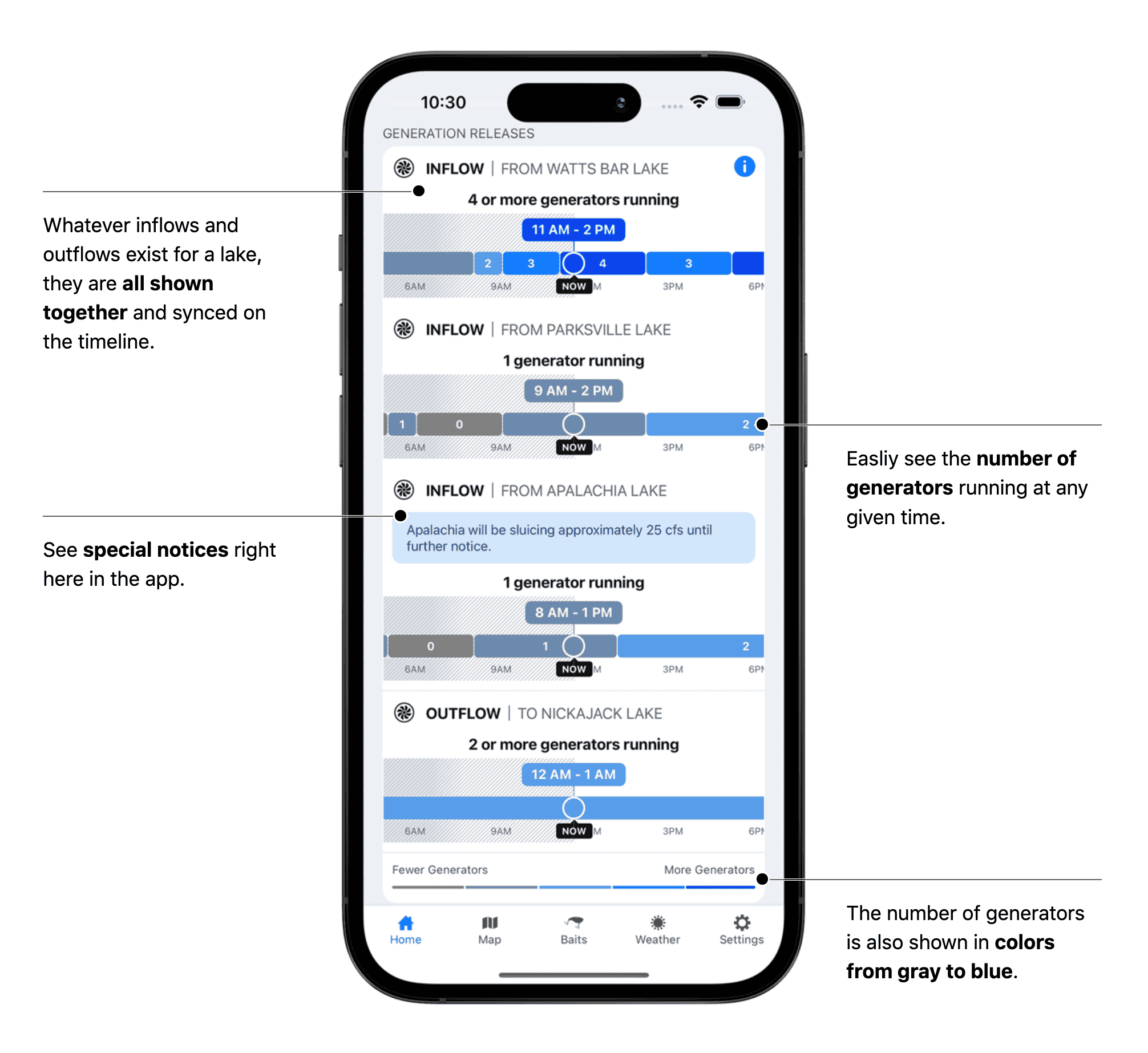 Today, we're thrilled to launch Version 2.15, which adds one of the most powerful and requested pieces of the puzzle for TVA and Alabama Power reservoir anglers: Generation Releases.